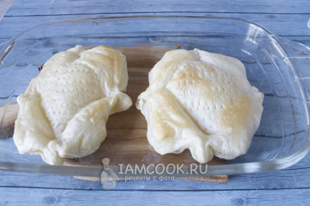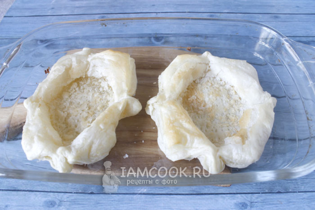 Выкладываем заготовки в форму для запекания, смазанную растительным маслом.