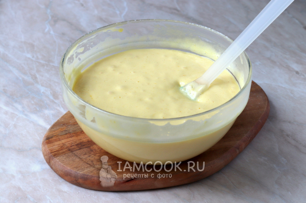 С помощью миксера взбейте массу до пышного светлого состояния.