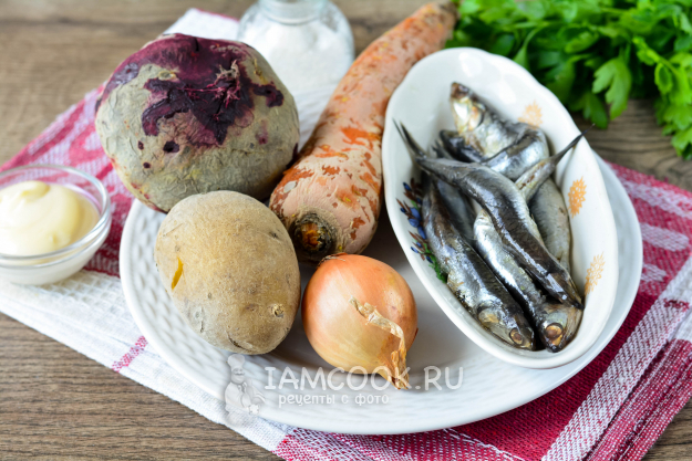 Подготовьте все ингредиенты для салата "Хамса под шубой". Корнеплоды (картофель, свеклу и морковку) вымойте, заранее сварите в кожуре. Картофель и морковка варятся около 20-25 минут, а свекла чуть подольше - минут 35-40. Остудите овощи и можете приступать к сборке салата.