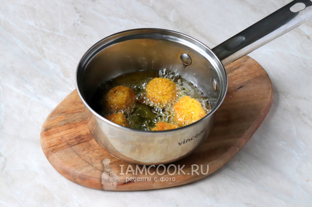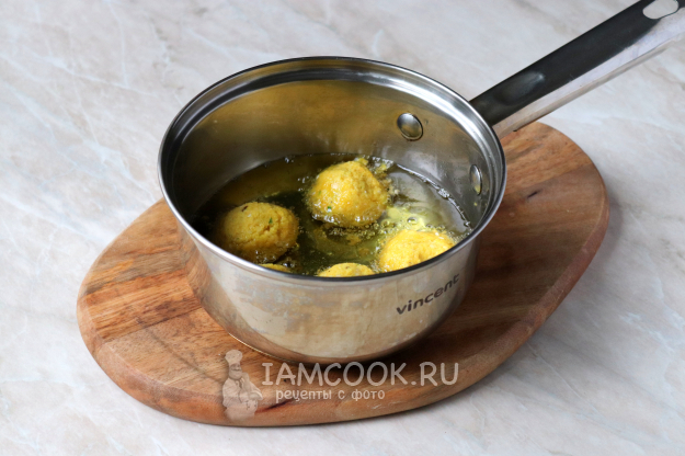 Жарьте шарики на среднем огне до золотистого цвета, периодически переворачивая. После чего выложите на бумажное полотенце, чтобы излишки масла впитались.