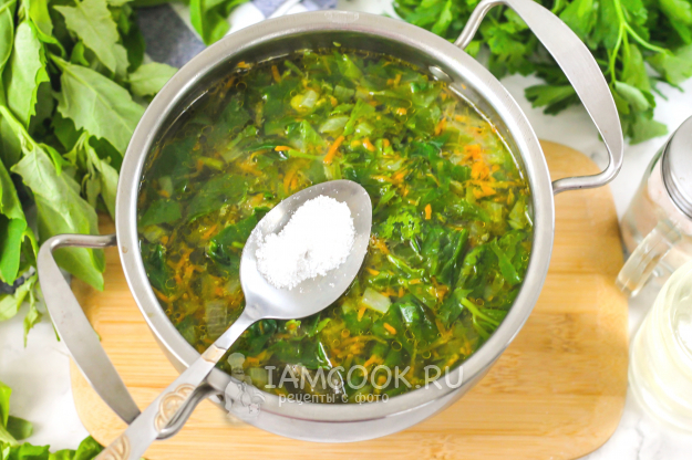 Всыпьте соль. Попробуйте суп на вкус и подкорректируйте его, если это потребуется.