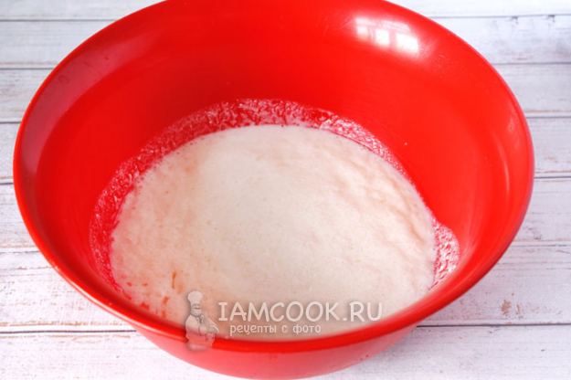 Всыпаем больше половины просеянной муки, перемешиваем.