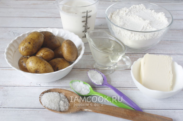 Готовим продукты для чеченских лепешек с картошкой (их называют ещё "чепалгаш"). Кефир должен быть комнатной температуры.