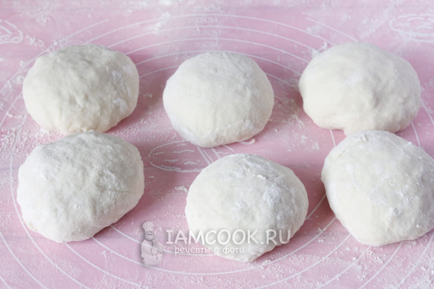 Делим тесто на 6 равных кусочков, подкатываем их в шарики.