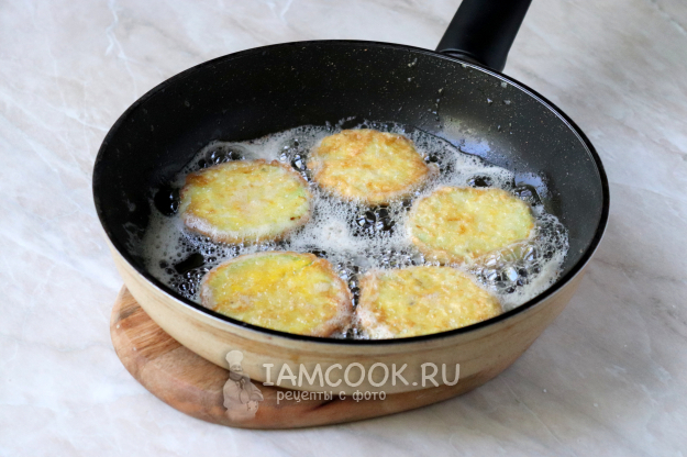 Каждое колечко легонько отбейте с двух сторон молотком для отбивных. В этом деле переусердствовать не нужно, главное, чтобы на поверхности появились неглубокие вмятины.