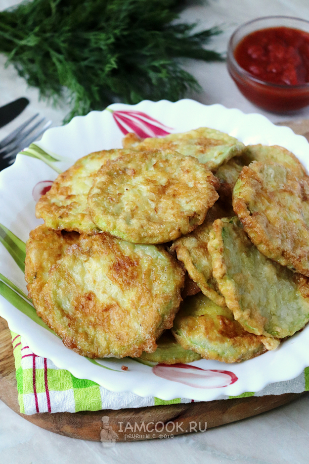 Огонь при этом должен быть средним, чтобы кабачок внутри успел пропечься. Готовую партию переложите на бумажное полотенце, в которое впитается лишнее масло, а на сковороду выложите новую порцию заготовок.