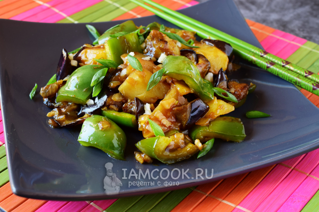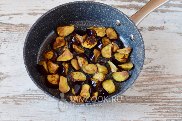 Добавим оставшееся масло и обжарим баклажан минуты 2-3 на сильном огне. Баклажан должен подрумяниться. Не забываем помешивать.
