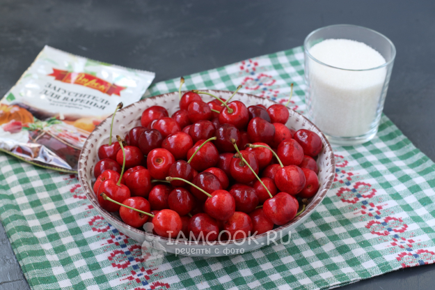Для приготовления джема черешни на зиму понадобятся следующие ингредиенты.