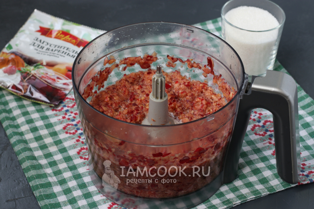 Переложить черешню в чашу блендера и измельчить, используя насадку "металлический нож".