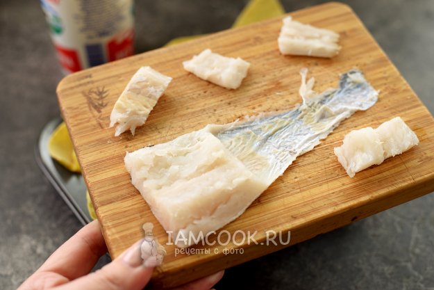 Очистите чешую, срежьте филе рыбы с хребта и кожи, нарежьте его небольшими кусочками.