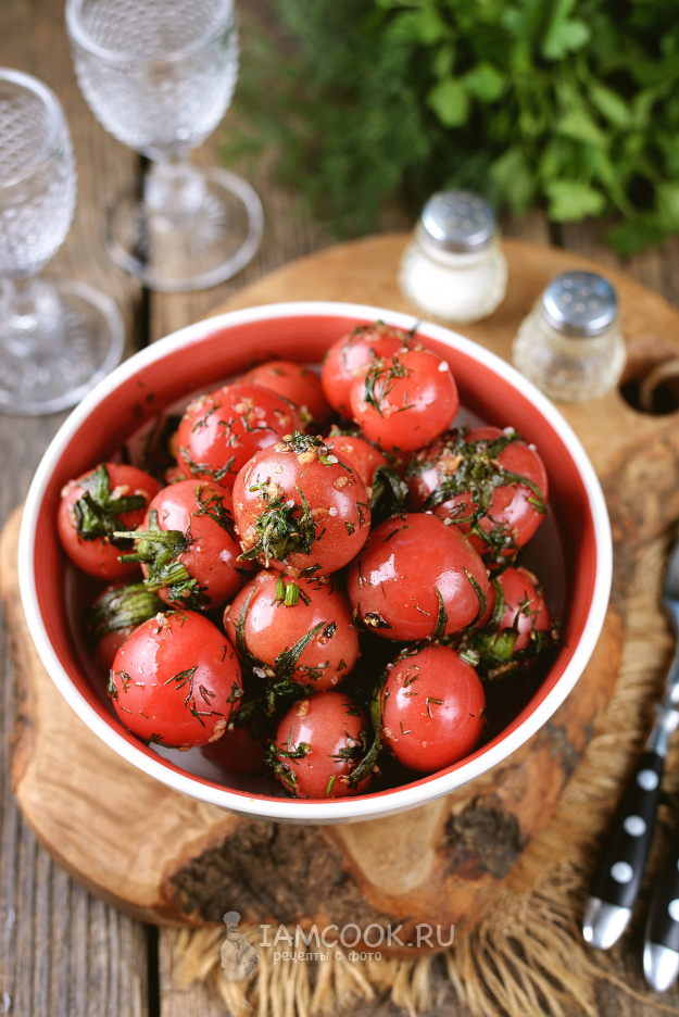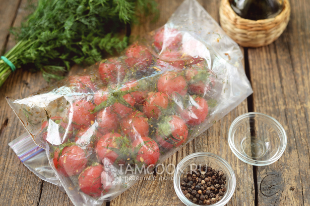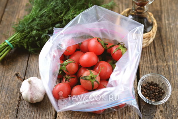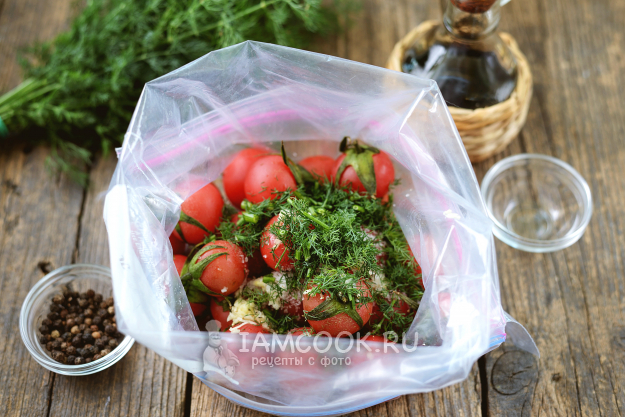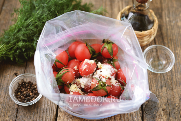 Малосольные помидоры черри в пакете готовы. Это бесподобная закуска под водочку. Готовьте с удовольствием, рекомендую.
