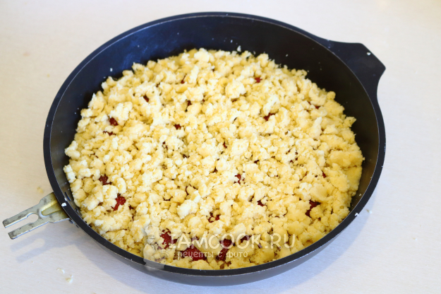 И наконец, оставшейся крошкой посыплем верхушку пирога.