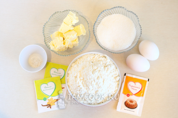 Отложим ягоду и творожную начинку в сторону, приготовим тесто. Для этого возьмём следующие ингредиенты.