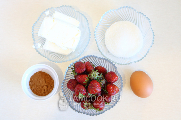 Возьмите ингредиенты для приготовления творожной сбричолаты с клубникой. Начнём с приготовления начинки.