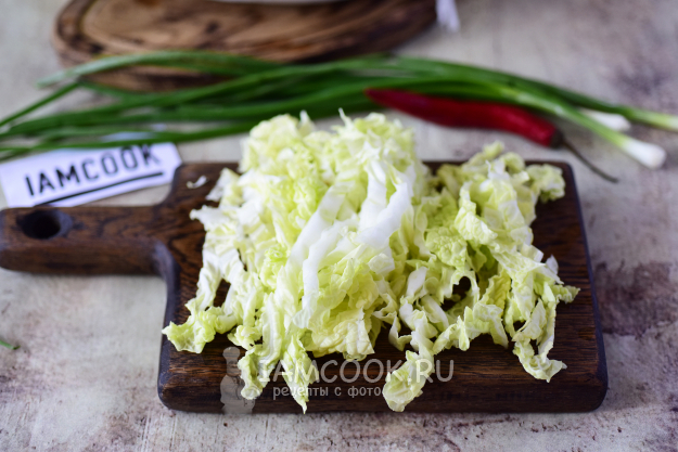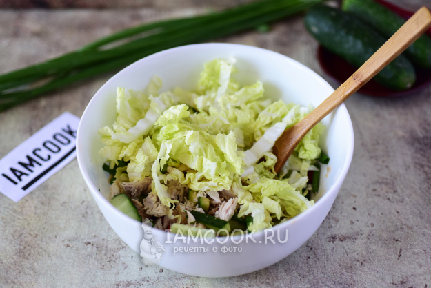 Выложить капустную нарезку в миску к остальным ингредиентам.