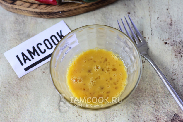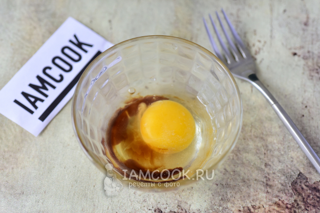 В отдельной миске соединить ингредиенты для омлета «Тамаго»: яйцо, соевый соус (1 ч.л.), сахар и лимонный сок (2 ч.л.).