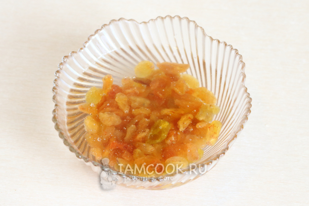 Теперь займемся добавками к каше. Изюм зальём кипятком на 15 минут.
