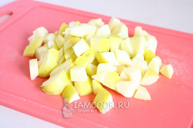 Яблоки очистим от сердцевины и нарежем на произвольные кубики.