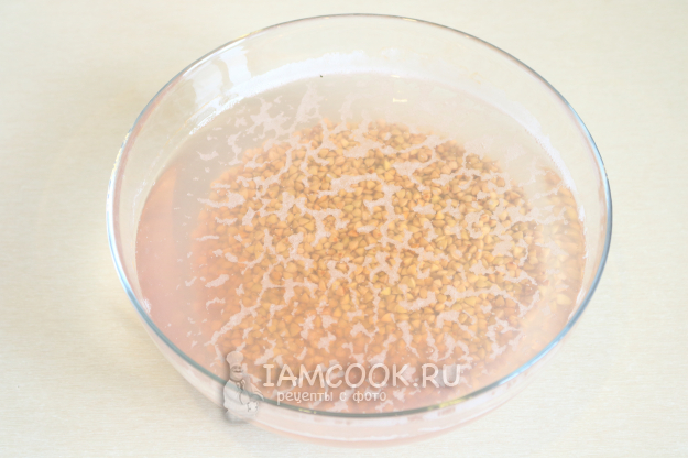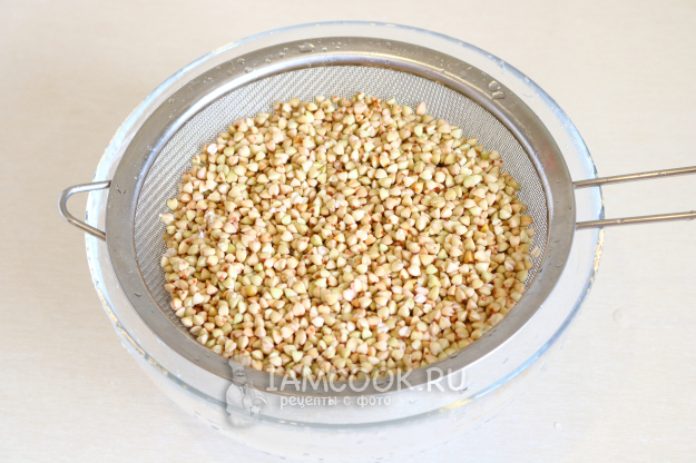 Зелёную гречку необходимо промыть и замочить на ночь (или на 8-10 часов) в воде.