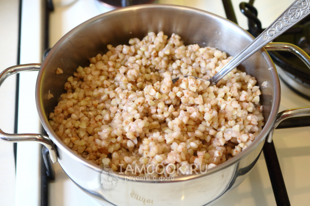 Доведём до кипения и будем варить на минимальном огне, прикрыв крышкой, 10 минут - до впитывания всей жидкости. Гречка готова.