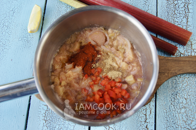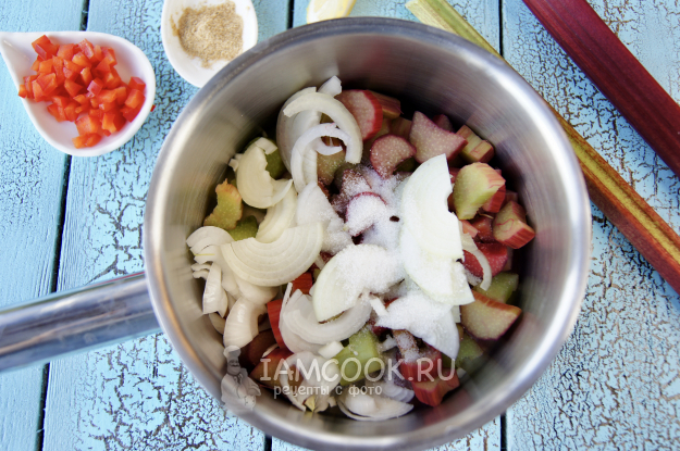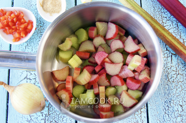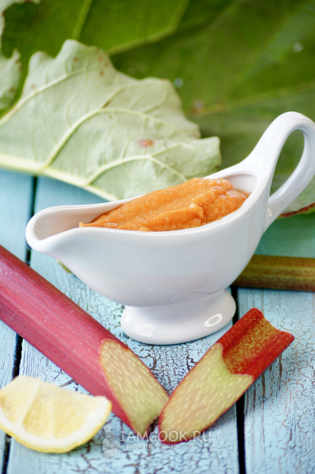 Осталось охладить, затем попробовать на сладость и кислинку: если все устраивает - соус из ревеня к мясу можно подавать на стол.