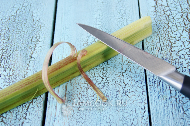 Ножом подцепите край стебля и снимите тонкую пленку.