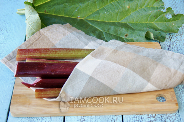 Ревень промойте под проточной холодной водой, обсушите полотенцем от влаги.