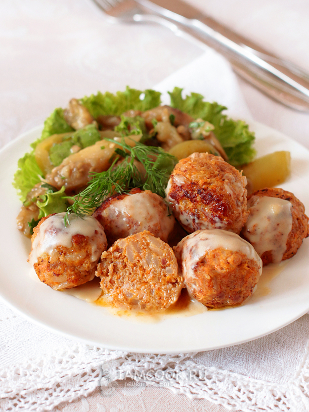Сразу же перелейте сливочный соус в подходящую для подачи посуду и полейте им готовые тефтели.