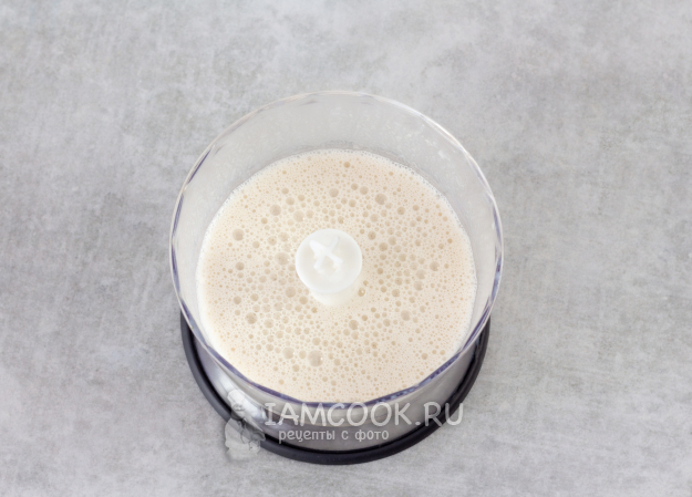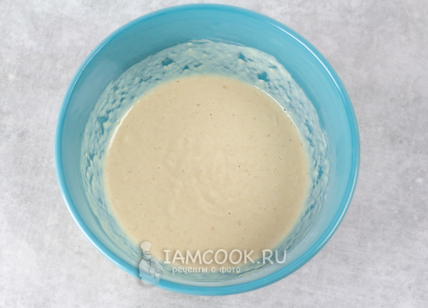 Влейте смесь овсяного молока и банана. Перемешайте всё до получения однородного теста, без комочков.