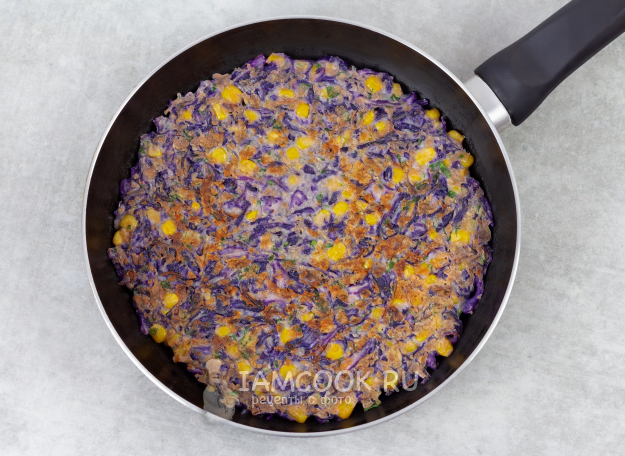 В точности таким же образом можно приготовить лепешку из белокочанной капусты.