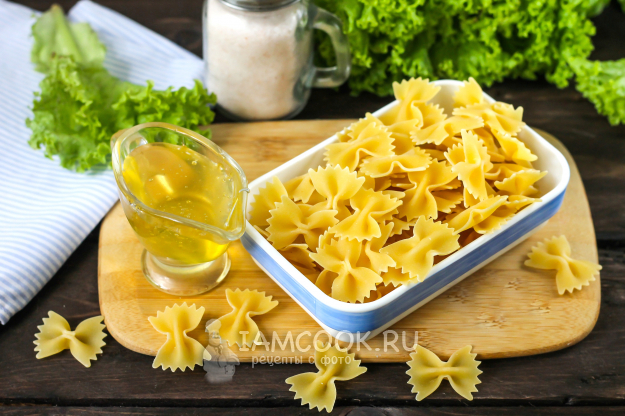 Подготовьте необходимые ингредиенты макарон с мёдом и начнем кулинарить. Я использую пасту «Фарфалле», вы можете приобрести рожки, ракушки, спирали и т.д. Мёд может быть любого сорта, кроме гречишного - он слегка горчит.