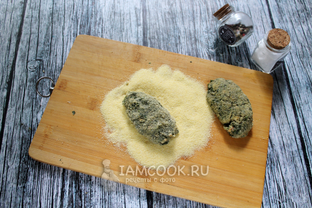 Дальше все просто: формуйте котлетки обычным способом. Обваляйте их в манной крупе (можно в сухарях или муке).