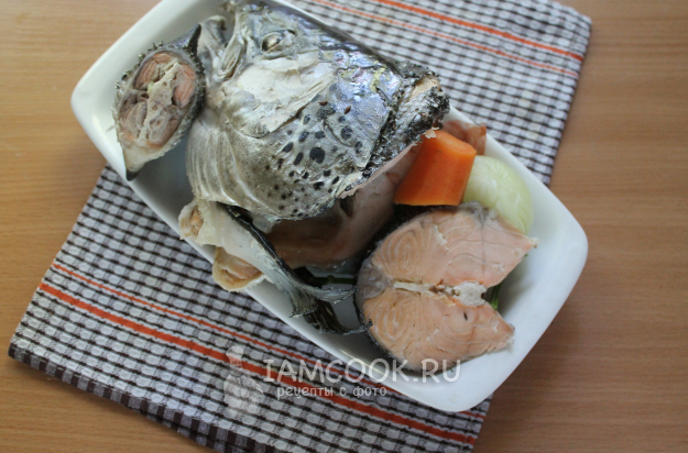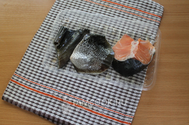 Приготовьте остальные части рыбы (хорошая уха получится и без них): промойте, у хвоста отрежьте плавник.
