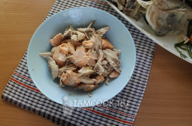 Когда картофель сварится, выньте из ухи всю рыбу и бульонные овощи.