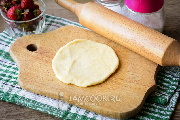 Затем тесто разделите на небольшие шарики, каждый шарик раскатайте при помощи скалки в тонкую круглую лепешку, диаметром примерно 6-7 см.