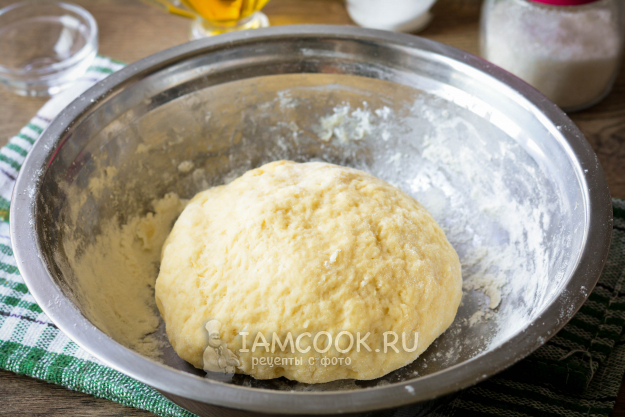Теперь поработайте руками - замесите мягкое, упругое и эластичное тесто, оно будет очень податливым, слегка теплым. Прикройте миску с тестом чистым хлопковым полотенцем и оставьте отдыхать на 15 минут. Так в тесте активизируется клейковина.