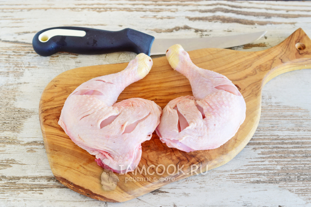 Для того чтобы курица лучше промариновалась, я делаю вот такие неглубокие разрезы с обеих сторон.