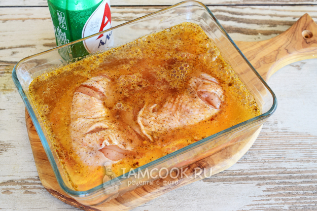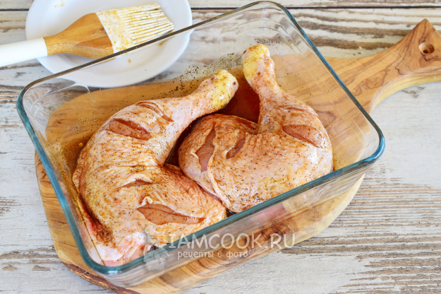 Хорошо смазываем полученной смесью куриное мясо и оставляем мариноваться на 30 минут.