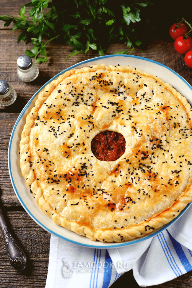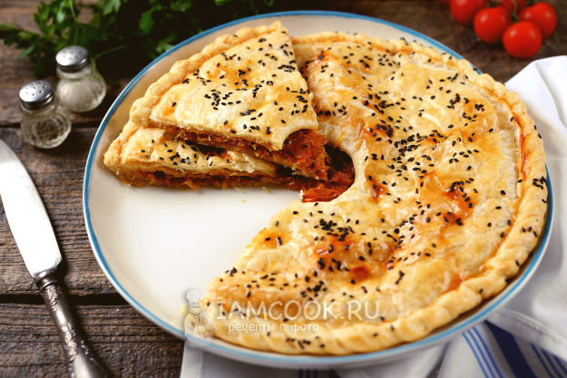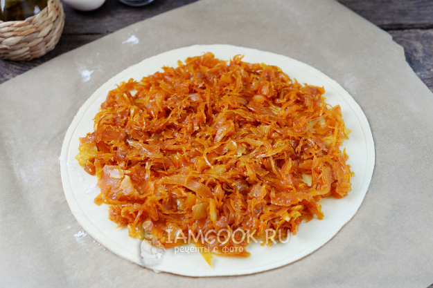 Пирог с квашеной капустой (из слоеного теста) готов.