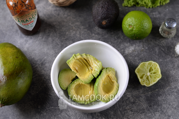 Авокадо нарежьте тонкими ломтиками, полейте лаймовым соком.