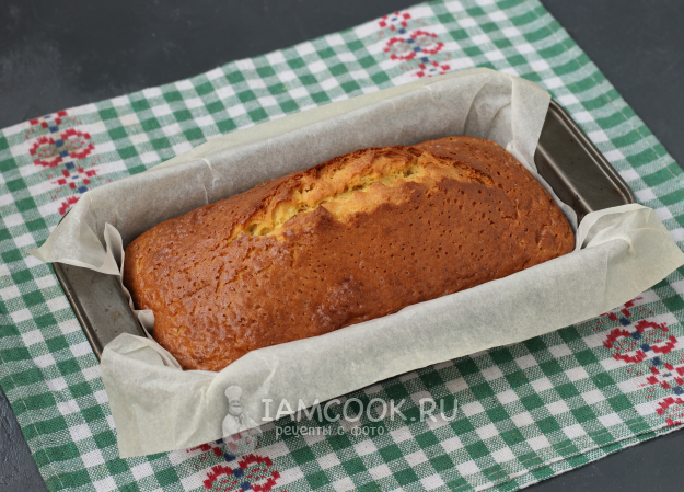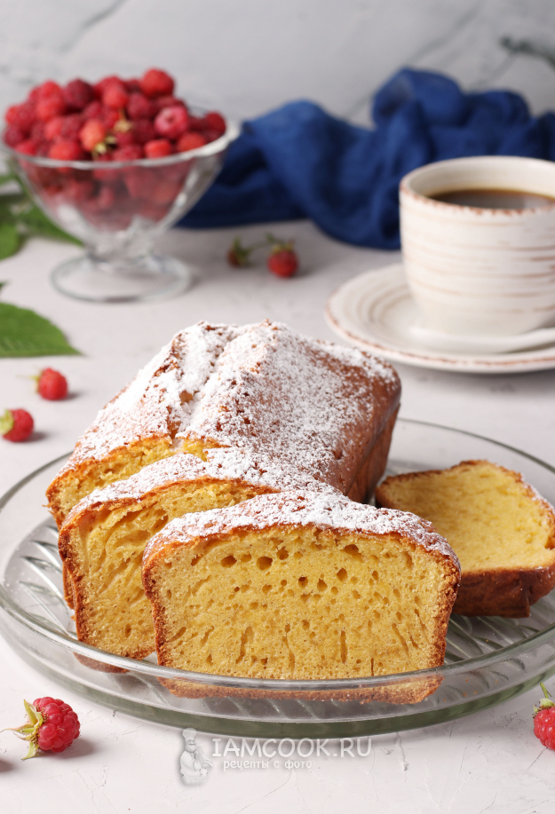 Кекс остудить, посыпать сахарной пудрой и подать к столу.