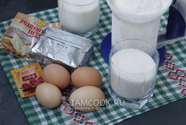 Для приготовления кекса на горячем молоке подготовить из списка необходимые ингредиенты.