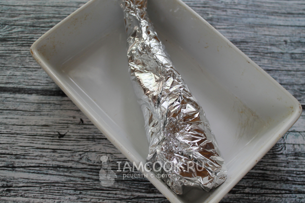 Плотно заверните рыбу в фольгу и запекайте при 170 градусах в течение получаса. Половинку луковицы нарежьте ломтиками и вложите внутрь брюшка.