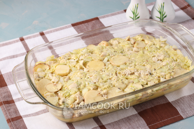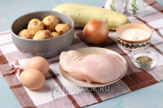 Для приготовления запеканки подготовить из списка необходимые ингредиенты. Куриное филе сразу поставить варить до готовности.