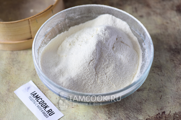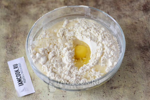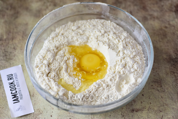 В мучной смеси сделать углубление и вбить туда яйцо.