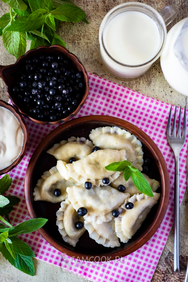Подготовить необходимые ингредиенты для вареников с черникой. Свежие ягоды черники тщательно перебрать и бережно промыть в дуршлаге под тонкой струйкой проточной воды.