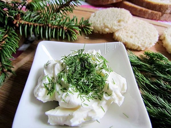 Укроп вымойте, просушите и мелко нарежьте. Смешайте с творожным сыром.