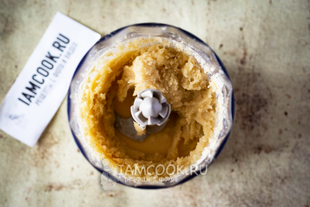 Включить блендер и дождаться, когда ингредиенты полностью измельчатся в пастообразное состояние, у меня ушло 7 минут. Ореховая паста получается очень густой и плотной.