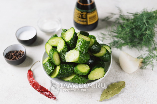 Подготовьте необходимые продукты для приготовления малосольных огурцов в пакете без чеснока.
