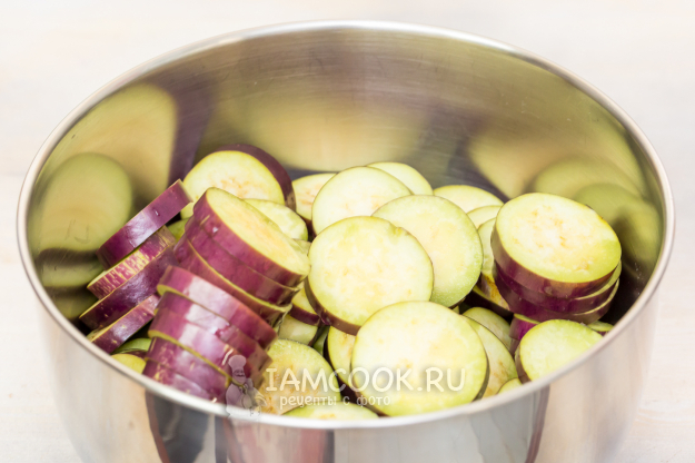 Баклажаны нарежьте кружочками толщиной 0,7-1 см.